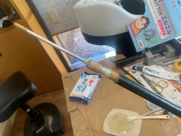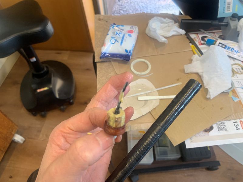 グリップ側から補強する芯を作ったので